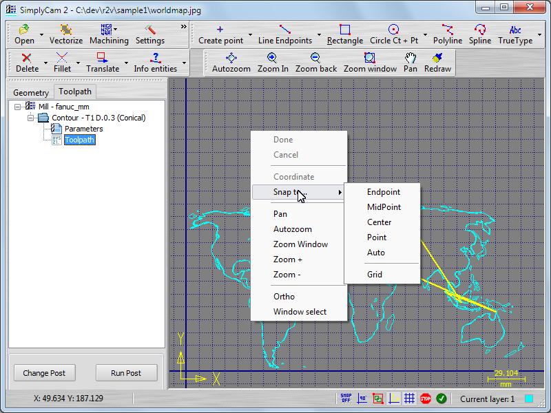 Questa è zona in cui SimplyCam visualizza le immagini, la geometria e i percorsi utensile.
